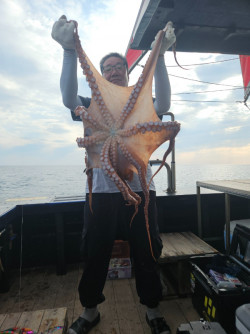 안녕하세요. 뉴한일호선장입니다.2025년 8월 8일 금요일 피문어 낚시 조황입니다.전날밤 내린 비덕분에 무덥지 않아 낚시하기 좋은 날씨였습니다.오늘도 크라켄 올라왔습니다.13.0kg, 10.3kg, 8.1kg, 4.8kg, 3.2kg, 2.3kg 각1마리씩과 2.0kg~0.7kg 15마리, 방생 7마리 총 28마리 올라왔습니다.중복된 사진은 올리지 않으며 사진은 한장씩만 올립니다.찾아 주신 조사님들 고생들많으셨습니다.날씨가 덥습니다. 좋은 컨디션으로 오세요.예약은 아래 선상 24에서 예약해 주시기 바랍니다.newhanil.sunsang24.com*자리추첨 4:40 출항시간 5:00입니다. 자리추첨 시간에 늦으신분들은 남는 자리에 가게되오니 참고해주세요.!!출조문의 : 010-5633-5760입금계좌: 농협 312 0020 1322 11고영천입니다.오시는길은 밴드 공지란에 올려놓았습니다.*예약관련은 밴드보다 문자메세지로 보내주시면 큰도움이 됩니다.조사님들의 많은 협조부탁드립니다.예약사이트는 공지란에 올려놓았습니다.선장 01056335760 입니다.입금시 성함과 예약날짜 기입해주세요 *채비관련문어낚시대에 베이트 4점대나 장구통릴, 전동릴 등 편하신대로 챙겨오시되 수심40m 내외 이니 참고하시어 맞게 준비해 오세요.합사3호 , 봉돌 50호, 최소 반짝이 스커트 15개, 왕눈이 에기 45개 정도 입니다.*도시락은 새벽마다 직접만든 초밥으로 제공하고 있습니다.가급적 배에서 드시기를 권장하오며 혹시 챙겨 가셔도 무관하오나 배 밖에서 드시다 탈이 난거에 대해선 책임지지 않으오니 이점 숙지해 주시기 바랍니다. 아침에 오셔서 일찍 드셔도 되십니다^^*신분증 미지참시 탑승불가하오니 꼭 챙겨오시기 바랍니다 *강릉 뉴한일호는 9.77톤으로 최대 승선인원은 22명 이지만 더 편한 낚시를 위해 13인까지만 받습니다.#왕대구 #강릉항 #뉴한일호 #무늬오징어 #대왕문어 #우럭#쥐노래미 #대광어 #캐스팅방어 #대삼치 #고등어 #한일호 #피문어 ==== 강릉 뉴한일호 예약안내 ====예약문의 : 010-5633-5760오시는길 : 강원도 강릉시 창해로 14번길 55-37 (해양파출소앞)홈페이지 : http://newhanil.sunsang24.com/밴드 : https://band.us/band/75945987